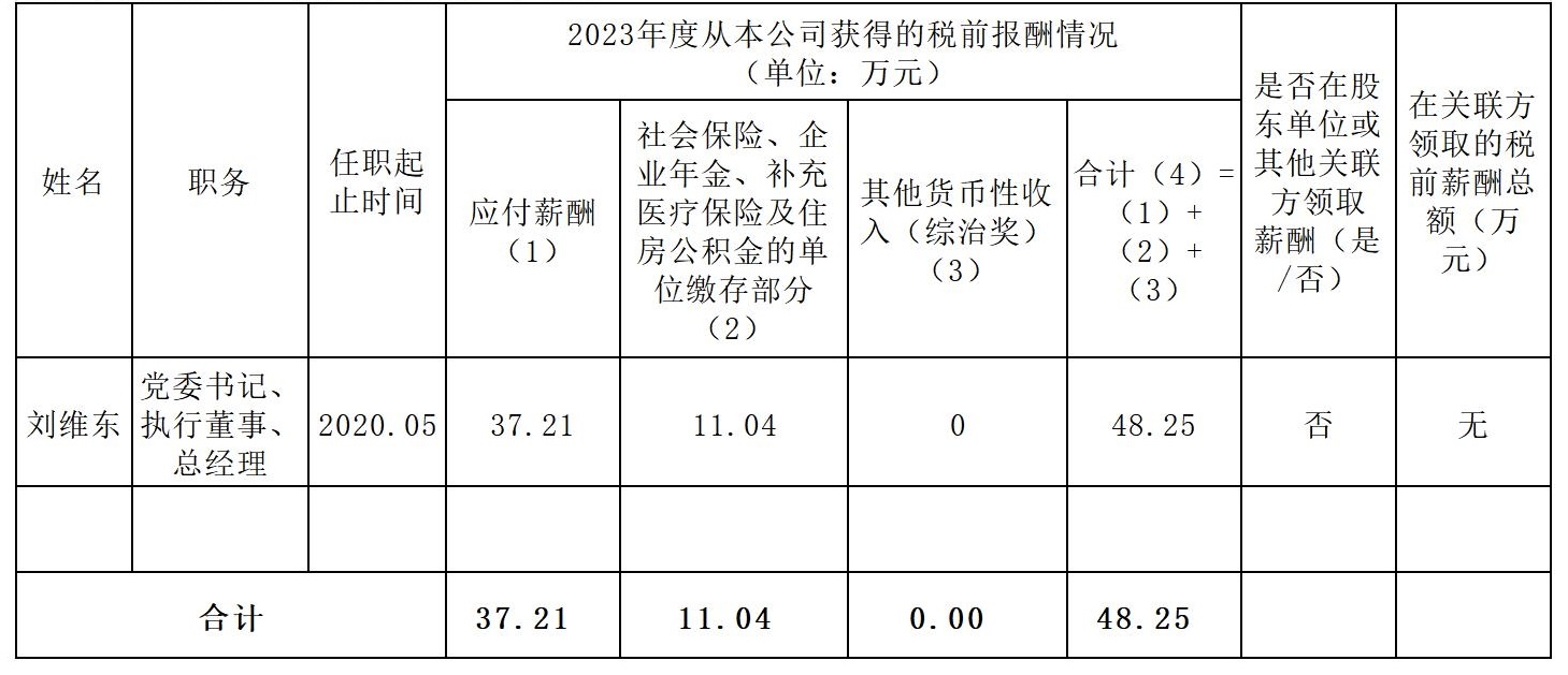 2023年度東南設計集團企業負責人薪酬信息披露表